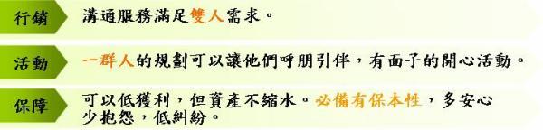 ‧依各族群所需的退休計劃概念,規劃各類保險金融商品服務組合